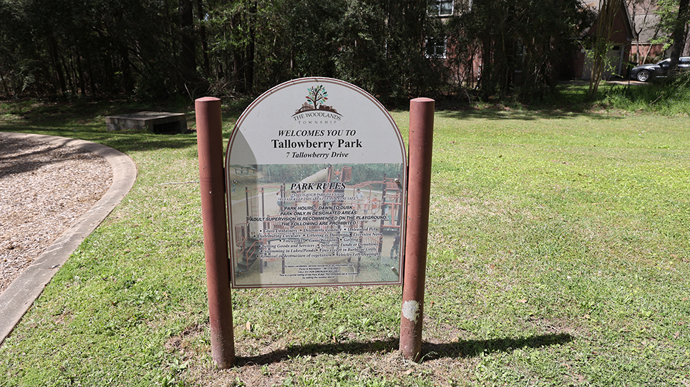 Township parks are open from dawn until dusk, except for lighted sports fields and courts, which close at 11 p.m. The speed limit is 10 miles per hour in all parks. Please park only in designated areas. Operating a motor vehicle within a park except on roads and parking lots is prohibited. The following are prohibited in The Woodlands Township parks and facilities: